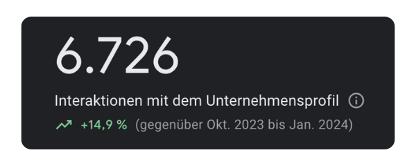 Durch eine professionelle Optimierung deines Google Unternehmensprofils, die wir als erfahrene Werbeagentur anbieten, kannst du deine Sichtbarkeit signifikant erhöhen. Wir sorgen dafür, dass dein Profil vollständig, ansprechend und mit wichtigen Keywords ausgestattet ist, was die Anzahl der Kundenanfragen ohne Werbekosten steigern kann.
